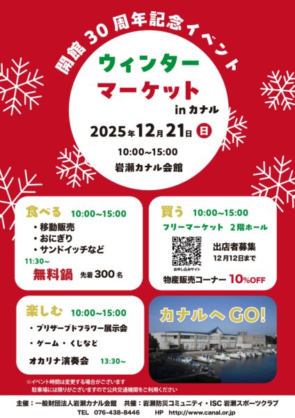 12月21日(日)岩瀬カナル会館で開催されます「ウィンターマーケットinカナル」に出店させていただきます。